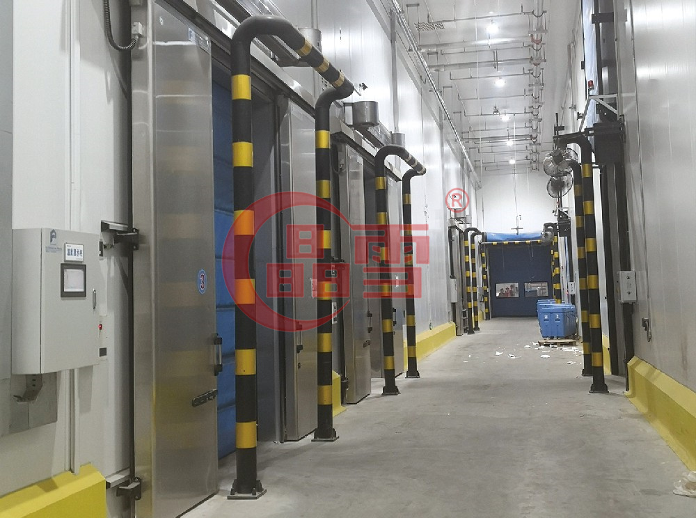 京東武漢新洲項目位于武漢陽邏經濟開發區,物流園占地面積超1200畝,其中二期鋼結構常溫廠房改造冷庫,冷庫占地12000m2,分速度庫、變溫庫、低溫穿堂,冷庫采用晶雪連續生產線B1級PIR保溫夾芯板,庫板面積32000m2,冷庫門由晶雪提供,保溫施工工期4個月。